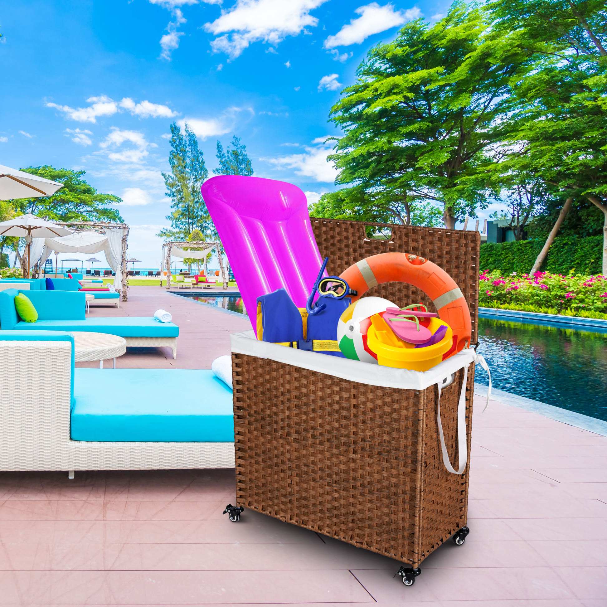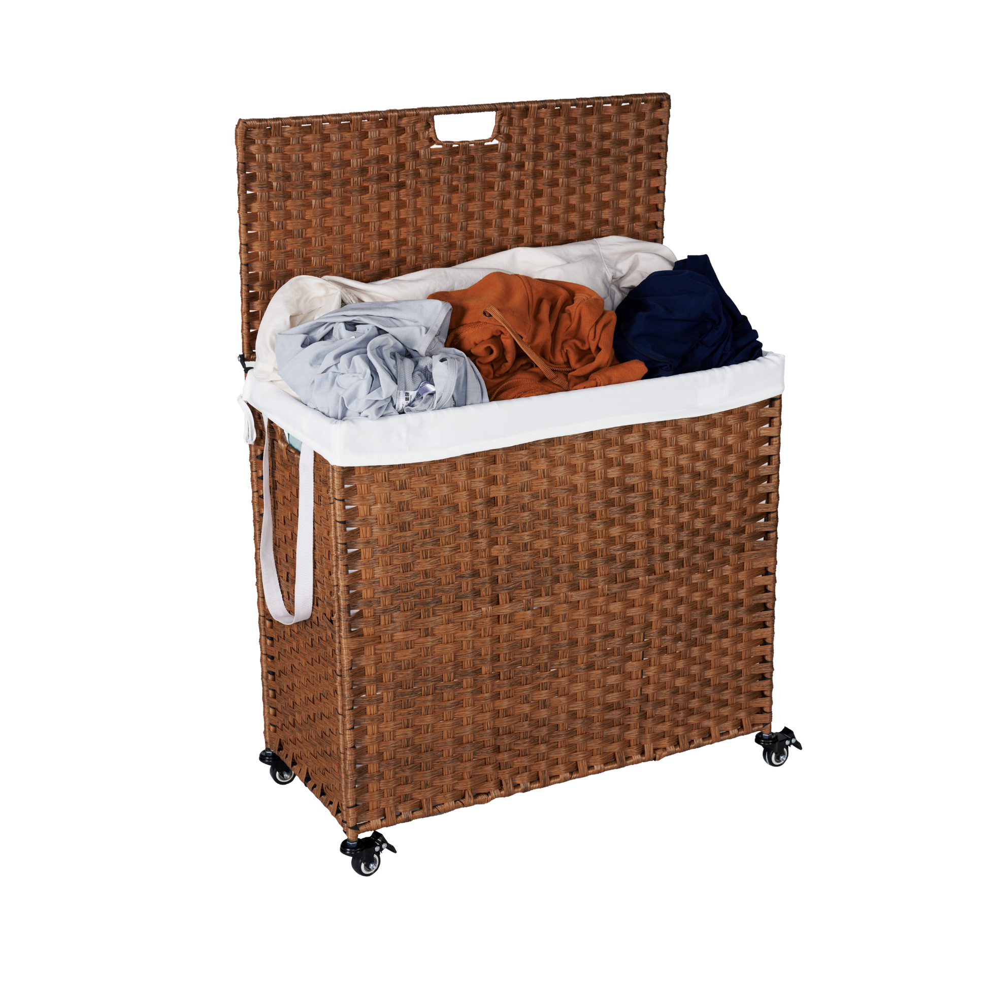 Laundry Hamper With Lid PE Rattan Powder Coating Frame Clothes Hampers with 02 Removable Bags, Wheels, 160L, Brown Color